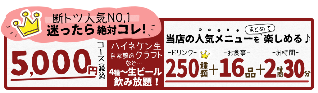 1ヶ月約10,000人の方にご利用頂いた!お食事付き・飲み放題コース